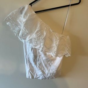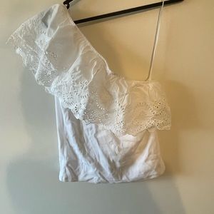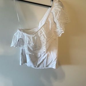 Eyelet One-Shoulder Paneled Rib-Knit Top for Women NWT Large