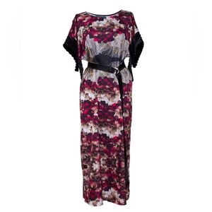 Artista Feathers Long Dress Size Medium Art To Wear Multicolored Pleated Sleeves
