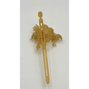 Vintage articulated kanzashi-style hairpin with layered floral and bird motif. Features moving trembler-style elements that shift when worn. Light yellow celluloid-look plastic (exact material unknown).