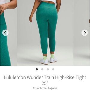 Lululemon Wunder Train High-Rise Tight 25" Crunch Teal Lagoon size 2