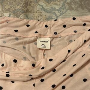 Soft blush pants with black polka dots. Ideal for cozy lounging.