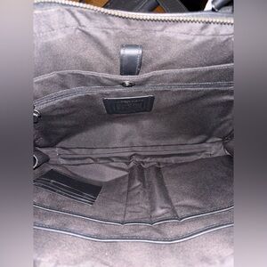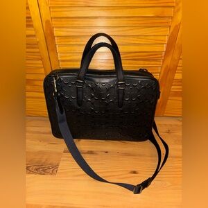 Sleek black leather with embossed design. Ideal for business and travel. Features sturdy handles and detachable strap.