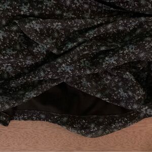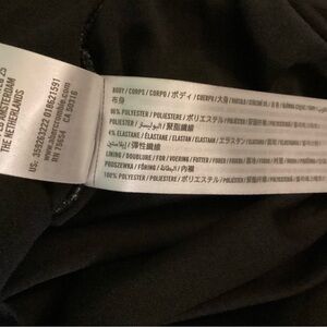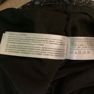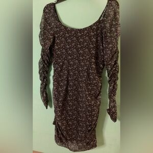 This is a new without tags Hollister Mesh Sheer Long Sleeve Mini Bodycon Dress in the pattern black ditsy floral. It is size medium. The sleeves are sheer while the body has a lining. The lining is made of 100% polyester and the body is made of 96% polyester and 4% elastane. It is has a body con fit with ruching on the sides.
