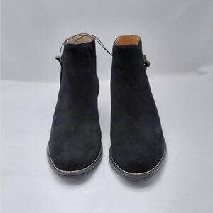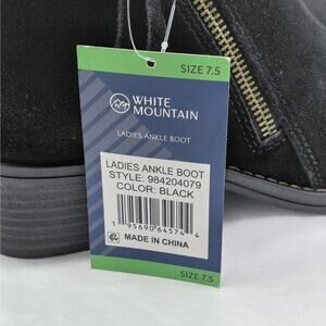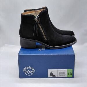 White Mountain Womens Ankle Boots Size 7.5 Black Suede Zip Block Heel Coastal Cowgirl Festival Western