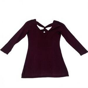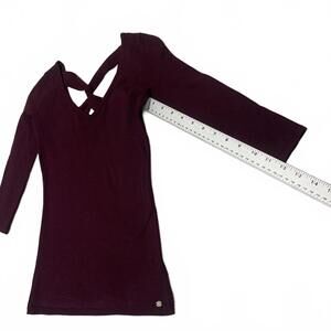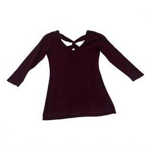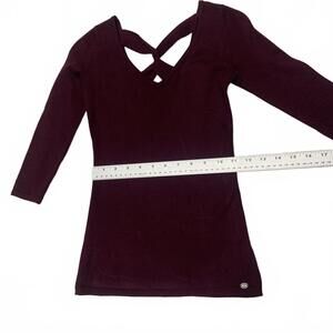 Guess Women's Size XSmall Burgundy 3/4 Sleeve Crisscross Neck Shirt Top