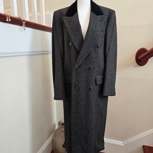 This timeless Burberry top coat will make a handsome lifelong investment into your winter wardrobe. Exquisitely crafted from virgin wool with a touch of cashmere, it boasts a plush velvet collar with traditional pockets and three-button fastening. Perfect for work and evening events, it will lend instant British charm to your every look. Product is sized by chest measurement. Color: Dark grey. Velvet collar; pure suede under collar. Notched lapels. 1 breast pocket; 2 flap pockets; 2 internal pockets. Buttoned cuffs. Single back vent. Three-button fastening. 93% virgin wool, 7% cashmere. Specialist dry clean.