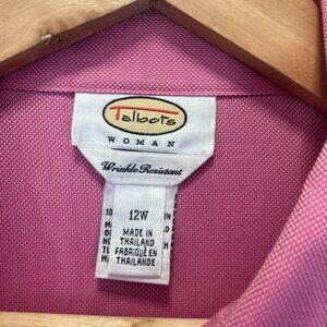 Talbots Wrinkle Resistant Long Sleeve Button Up Shirt Womens 12W Pink Blouse Office Top: