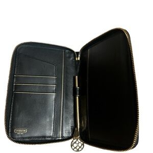 Black vintage EUC patent leather zip diary journal folio holder for planners or agendas. It’s in excellent used condition and comes with a gold coach pen.