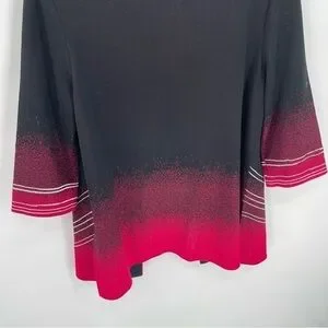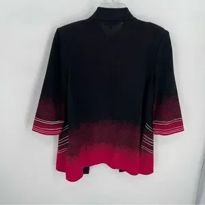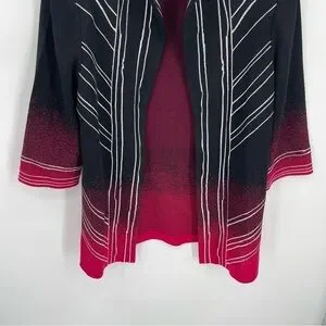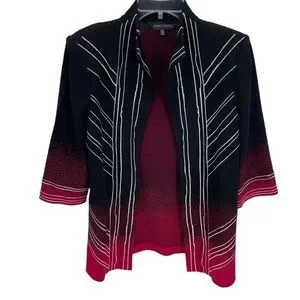 Ming Wang Womens size Small Open Cardigan Jacket Black Red white 3/4 sleeves