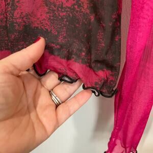 Silence + Noise Mesh Sheer Graphic Long Sleeve Y2K Top Size L