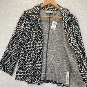 NWT Chicos Knit Jacket Size 1 Womens Medium (8) Black White Diamond Open Blazer