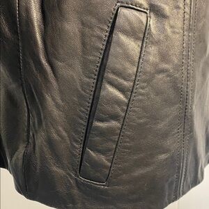 Jones New York Black Leather Jacket Minimalist Edgy Luxury Mobwife Large Petite