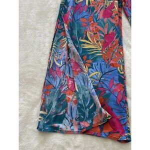 Kona Sol Pants Large Colorful Crepe High Slits Tropical Hawaiian Flowy Pleated