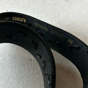 CHICOS Leather Western Tooled Belt Black Leopard Calf Hair Hammered Buckle SM