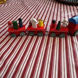 Vintage Handcrafted Wooden Christmas Train Decor Set
