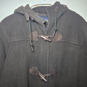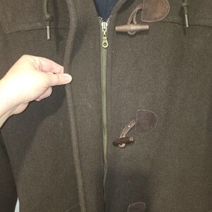 VTG Lands End Direct Merchant Wool Hooded Toggle Button Duffle Coat Choc.Brown L