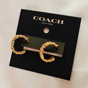 New Coach Rivet Chain Hoop Earrings Gold CBW13 $88
