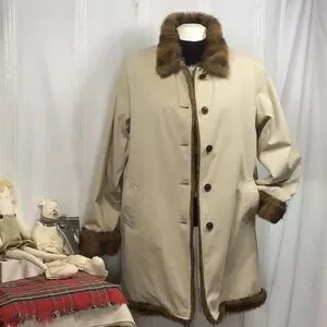 Women’s faux fur lined trench coat, Long length faux fur lined jean jacket, Fur trimmed coat. Excellent Condition