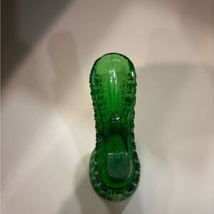 VINTAGE FENTON GLASS GREEN DAISY & BUTTON BOOT SHOE