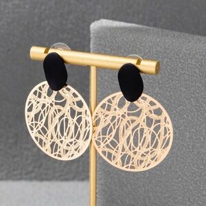 Gold Twist Spiral Flat Disc Hoop Earrings Classic Black Boho Jewelry Gift NEW