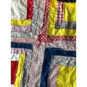 Log Cabin Quilt Topper Burgundy Navy Blue Yellow Country Cottage 53"x53" Square