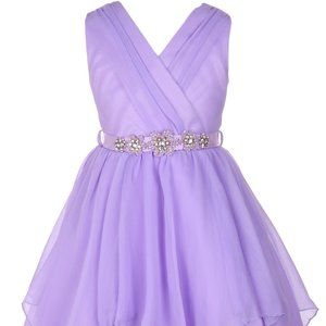 Sleeveless V Neck Chiffon Flower Girls Dress.