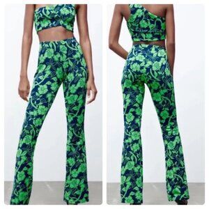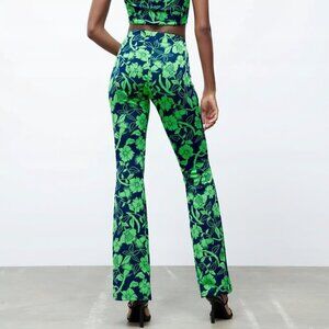NWT Zara Jacquard Neon Floral Flare Pants