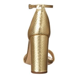 This season's perfect heel. The Yaro block heel sandal in gold boa is a wardrobe must with an elegant ankle strap and a perfect block heel. This women's block heel sandal was designed for chic comfort that will have you stepping out in confidence, no matter the occasion. Whether you're looking for a nude block heel sandal to pair with your favorite summer dress, or a bold black block heel sandal to add a touch of glam to your office look, the Yaro is serving exactly what you ordered. Wear with a slip dress for a night out on the town or with cropped trousers for a workwear refresh.