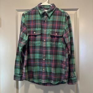 Unisex size small regular fit flannel. Green, black, blue, red. Worn but no flaws!