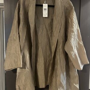 NWT Eileen Fisher Crinkled Tencel Shawl High Collar Jacket • 3XL • Briar