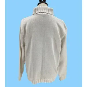 Vintage Ivory Turtleneck Pullover Sweater With Snowflake Knit Design Size M