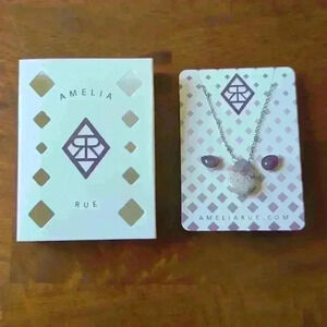 Silver necklace with amethyst stone pedant and amethyst earrings.