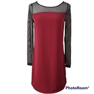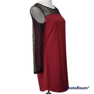 LUSH Dress Party Deep Plum Red Black Mesh Sleeve & Trim Brand New Sml/Med
