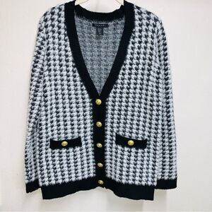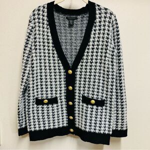 Tahari Black and White Houndstooth Cardigan with Gold Buttons XS to Medium
