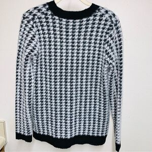 Elegant houndstooth pattern. Features gold button details. Perfect for layering. Oversized. I think up to a medium can wear this.