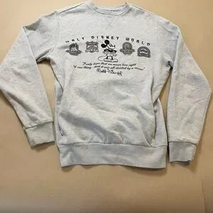 Disney Parks Adults Size Small Grey Sweatshirt Pockets Walt Disney World Mickey