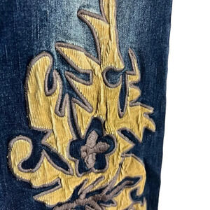 Bottoms, 2000s, denim, zipper and button closure, all seasons, winter, spring, summer, fall, pockets, belt loops, embroidered, stretch, made in China, cotton, spandex, machine washable