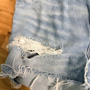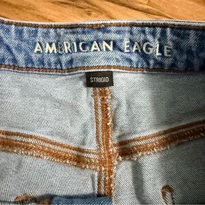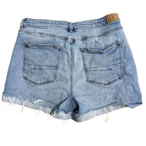 American Eagle mom denim shorts size 14, AE Strigid high rise distressed shorts, women’s light wash ripped jean shorts, frayed hem mom shorts, vintage style distressed denim shorts, American Eagle festival shorts, summer casual jean shorts for women, trendy ripped denim shorts, AE strigid mom shorts light blue, classic five-pocket denim shorts, American Eagle cutoff shorts, women’s high waist ripped shorts, plus size friendly denim shorts.