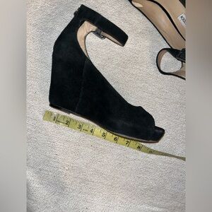 Steve Madden Lesliee Black Suede Ankle Strap Wedge Peep Toe Pump