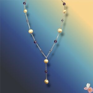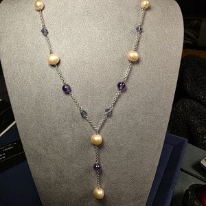 Danbury Mint 925 Amethyst & Freshwater Pearl Necklace Sterling Silver Y-Drop 269