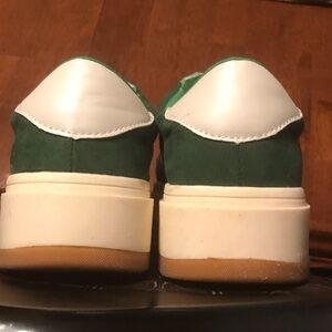 Chic green sneakers with white accents. Comfortable and stylish. Ideal for everyday wear.