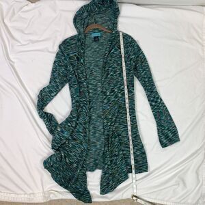 Anthropologie STACIA Open Cardigan Hooded Space Dye S Teal Green Bamboo