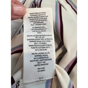 New RLX Ralph Lauren Athleisure Tennis Golf Sporty Exercise Dress, size S. This stretchy quick dry poly elastine blend dress features a quarter zip front with collar in cream maroon and periwinkle stripes.