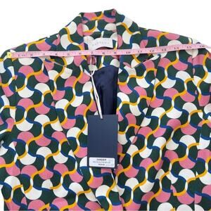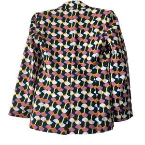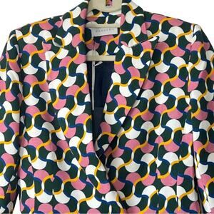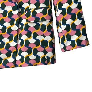 Double Breast Wool Blend Blazer. With colorful, bold geometric, funky, abstract print.