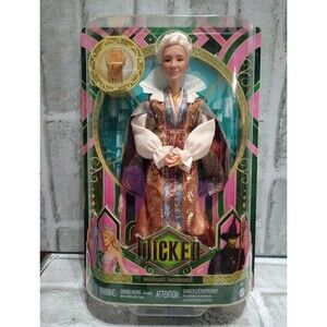 The NIP Wicked Madame Morrible Fashion Doll by Mattel is a 12-inch collector toy inspired by the character from The Wizard of Oz franchise. This girl doll features blonde hair that can be styled in wavy or straight patterns, brown eyes, and a light complexion. The set includes clothing, accessories, and the doll itself, making it a perfect addition to any Barbie or Madame Morrible collection. With a theme centered around TV and movies, this fashion doll is a must-have for fans of the Wizard of Oz series, suitable for ages 5-7 years and beyond.
