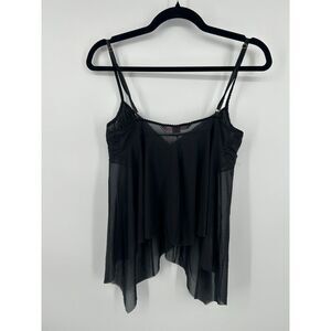VTG Victoria's Secret Asymmetrical Medium Black Babydoll Lace Cami Coquette Y2K