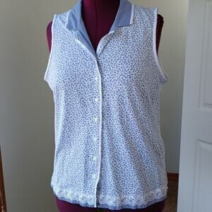 Celestial Dreams Blue Floral Gingham Tank Top XL REPAIRED cottage lace comfy