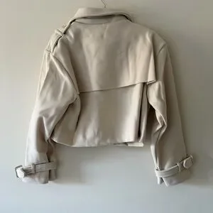 New without Tags Long Belted Sleeves Cream Cropped Double Breasted Collar Neckline Coat