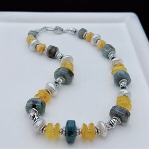 ✨ X798 Handmade Coin-Shaped Freshwater Baroque Pearl, Agate & Amber Necklace – 18”
