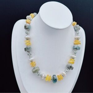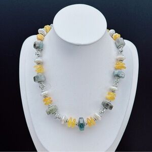 🌟 Unique Handmade Gemstone & Pearl Statement Necklace